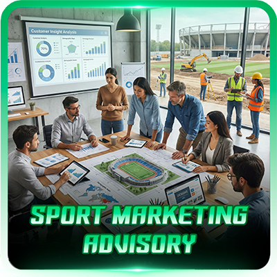 ช่วยด้านการตลาดของผู้ประกอบการด้านสนาม กีฬาเช่น สำรวจความต้องการตลาดก่อน ก่อสร้าง, ให้คำแนะนำด้านการตลาด, ช่วยทำโซเชียล และเว็บไซต์, Logo Branding, วิเคราะห์ Customer Insight และอื่นๆ
