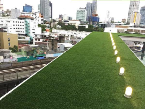 ผลงานติดตั้ง หญ้าเทียมตกแต่ง คอนโด บีทนิค สุขุมวิท 32 หญ้าจัด สวนรุ่น GLS-035